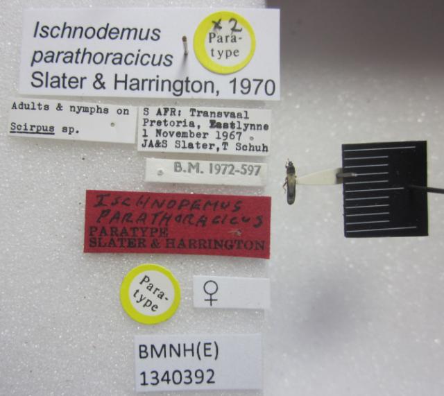 Ischnodemus parathoracicus. Paratype. (BMNH) - (CC BY-NC 4.0) Photo by Stuart Cole, reproduced with permission from the Natural History Museum, London, UK.