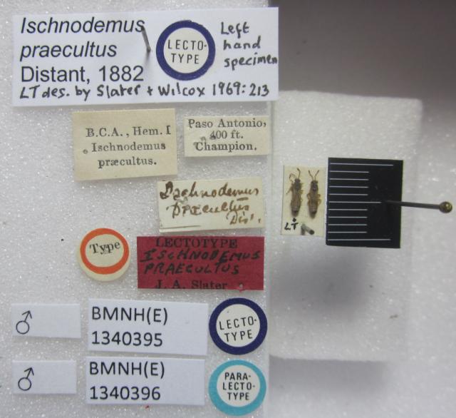 Ischnodemus praecultus. Lectotype; Paralectotype. (BMNH) - (CC BY-NC 4.0) Photo by Stuart Cole, reproduced with permission from the Natural History Museum, London, UK.