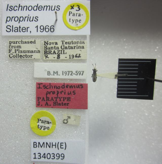 Ischnodemus proprius. Paratype. (BMNH) - (CC BY-NC 4.0) Photo by Stuart Cole, reproduced with permission from the Natural History Museum, London, UK.