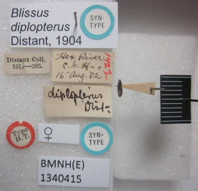 Blissus diplopterus. Syntype. (BMNH) - (CC BY-NC 4.0) Photo by Stuart Cole, reproduced with permission from the Natural History Museum, London, UK.