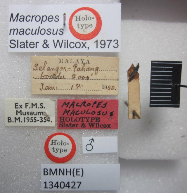 Macropes maculosus. Holotype. (BMNH) - (CC BY-NC 4.0) Photo by Stuart Cole, reproduced with permission from the Natural History Museum, London, UK.