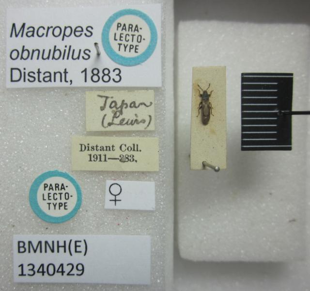 Macropes obnubilus. Paralectotype. (BMNH) - (CC BY-NC 4.0) Photo by Stuart Cole, reproduced with permission from the Natural History Museum, London, UK.