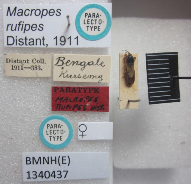 Macropes rufipes. Paralectotype. (BMNH) - (CC BY-NC 4.0) Photo by Stuart Cole, reproduced with permission from the Natural History Museum, London, UK.