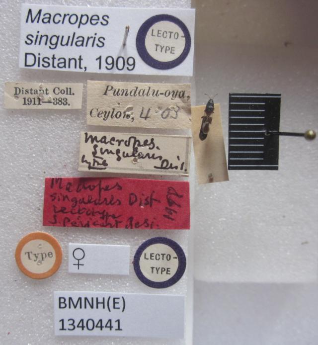 Macropes singularis. Lectotype. (BMNH) - (CC BY-NC 4.0) Photo by Stuart Cole, reproduced with permission from the Natural History Museum, London, UK.