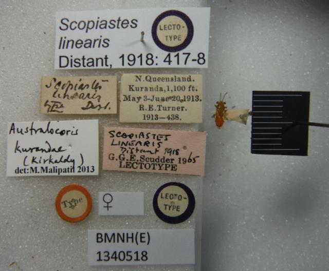 Scopiastes linearis. Lectotype. (BMNH) - (CC BY-NC 4.0) Photo by Stuart Cole, reproduced with permission from the Natural History Museum, London, UK.