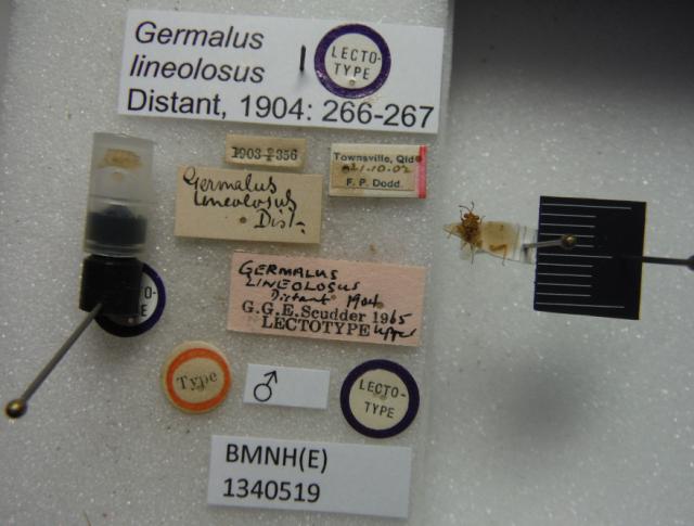 Germalus lineolosus. Lectotype. (BMNH) - (CC BY-NC 4.0) Photo by Stuart Cole, reproduced with permission from the Natural History Museum, London, UK.