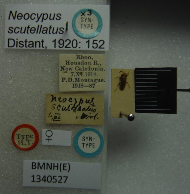 Neocypus scutellatus. Syntype. (BMNH) - (CC BY-NC 4.0) Photo by Stuart Cole, reproduced with permission from the Natural History Museum, London, UK.