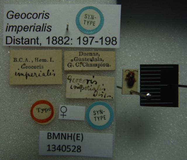 Geocoris imperialis. Syntype. (BMNH) - (CC BY-NC 4.0) Photo by Stuart Cole, reproduced with permission from the Natural History Museum, London, UK.