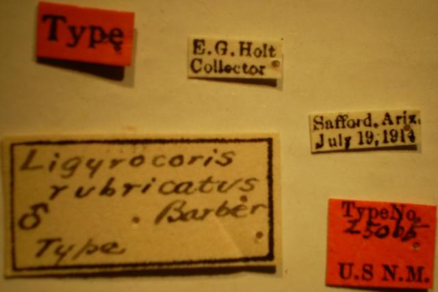 Ligyrocoris rubricatus HOLOTYPE Labels (NMNH) - (CC BY-NC 4.0) - Photo by Pablo M. Dellapé with permission from the National Museum of Natural History (NMNH), Smithsonian Institution, Washington, D.C.
