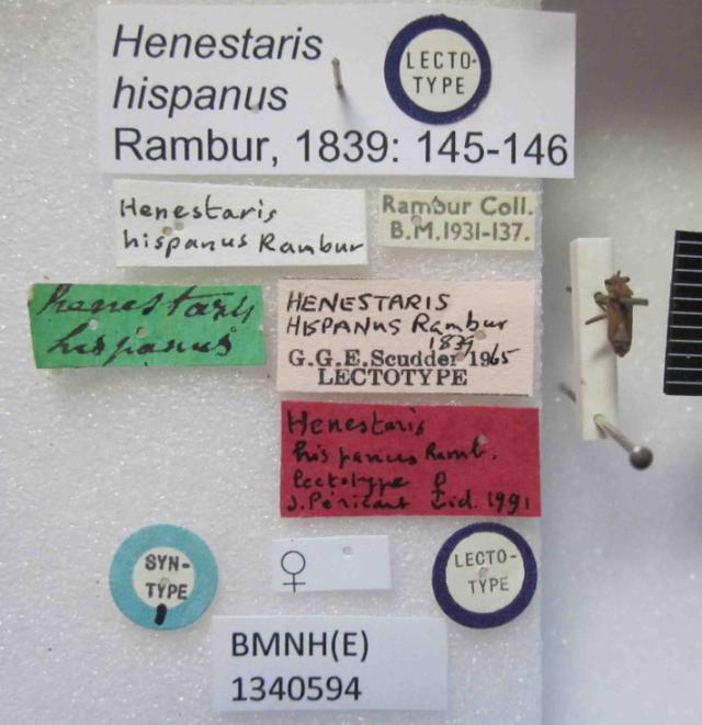 Henestaris hispanus. Lectotype. (BMNH) - (CC BY-NC 4.0) Photo by Stuart Cole, reproduced with permission from the Natural History Museum, London, UK.