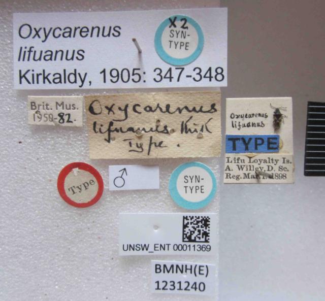 Oxycarenus lifuanus. Syntype. (BMNH) - (CC BY-NC 4.0) Photo by Stuart Cole, reproduced with permission from the Natural History Museum, London, UK.