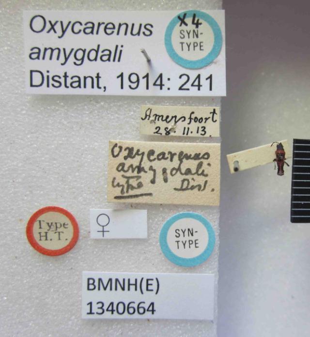Oxycarenus amygdali. Syntype. (BMNH) - (CC BY-NC 4.0) Photo by Stuart Cole, reproduced with permission from the Natural History Museum, London, UK.