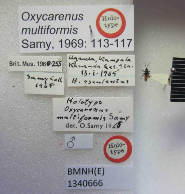 Oxycarenus multiformis. Holotype. (BMNH) - (CC BY-NC 4.0) Photo by Stuart Cole, reproduced with permission from the Natural History Museum, London, UK.