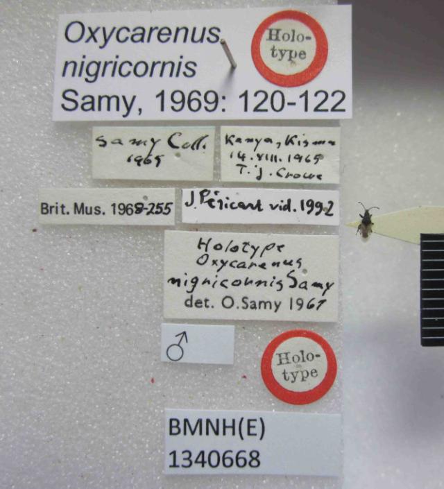 Oxycarenus nigricornis. Holotype. (BMNH) - (CC BY-NC 4.0) Photo by Stuart Cole, reproduced with permission from the Natural History Museum, London, UK.