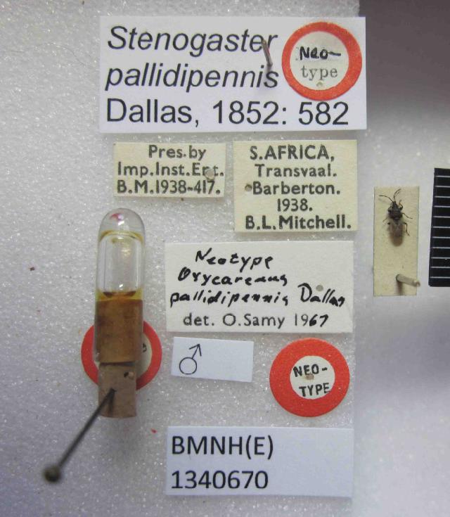 Stenogaster pallidipennis. Neotype. (BMNH) - (CC BY-NC 4.0) Photo by Stuart Cole, reproduced with permission from the Natural History Museum, London, UK.