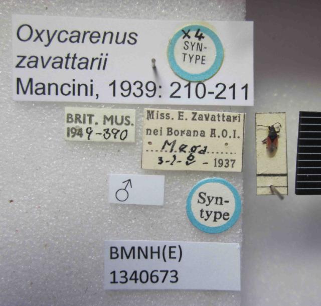 Oxycarenus zavattarii. Paralectotype. (BMNH) - (CC BY-NC 4.0) Photo by Stuart Cole, reproduced with permission from the Natural History Museum, London, UK.