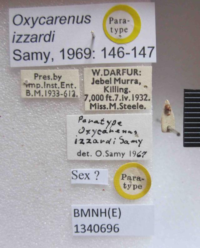 Oxycarenus izzardi. Paratype. (BMNH) - (CC BY-NC 4.0) Photo by Stuart Cole, reproduced with permission from the Natural History Museum, London, UK.