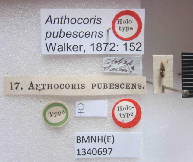 Anthocoris pubescens. Holotype. (BMNH) - (CC BY-NC 4.0) Photo by Stuart Cole, reproduced with permission from the Natural History Museum, London, UK.