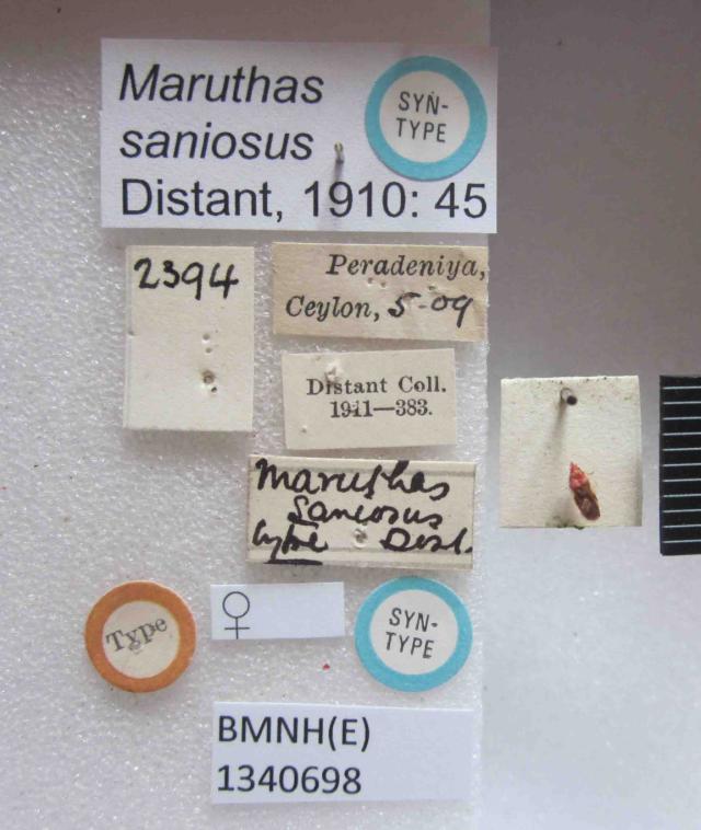 Maruthas saniosus. Syntype. (BMNH) - (CC BY-NC 4.0) Photo by Stuart Cole, reproduced with permission from the Natural History Museum, London, UK.