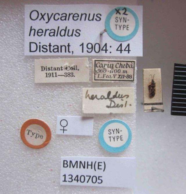 Oxycarenus heraldus. Syntype. (BMNH) - (CC BY-NC 4.0) Photo by Stuart Cole, reproduced with permission from the Natural History Museum, London, UK.