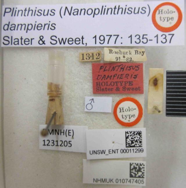 Plinthisus (Nanoplinthisus) dampieris. Holotype. (BMNH) - (CC BY-NC 4.0) Photo by Stuart Cole, reproduced with permission from the Natural History Museum, London, UK.