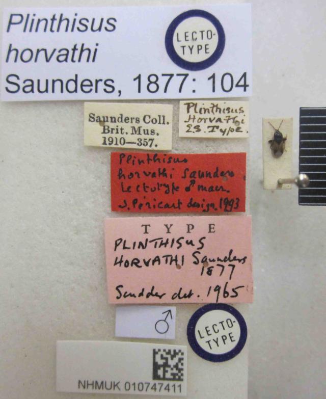 Plinthisus horvathi. Lectotype. (BMNH) - (CC BY-NC 4.0) Photo by Stuart Cole, reproduced with permission from the Natural History Museum, London, UK.
