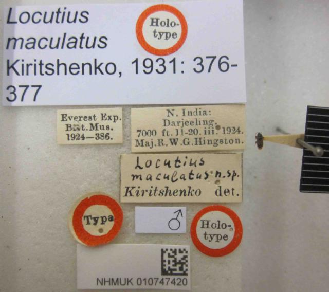 Locutius maculatus. Holotype. (BMNH) - (CC BY-NC 4.0) Photo by Stuart Cole, reproduced with permission from the Natural History Museum, London, UK.
