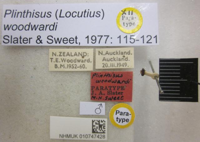Plinthisus (Locutius) woodwardi. Paratype. (BMNH) - (CC BY-NC 4.0) Photo by Stuart Cole, reproduced with permission from the Natural History Museum, London, UK.