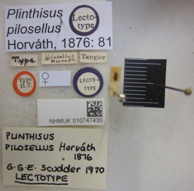 Plinthisus pilosellus. Lectotype. (BMNH) - (CC BY-NC 4.0) Photo by Stuart Cole, reproduced with permission from the Natural History Museum, London, UK.