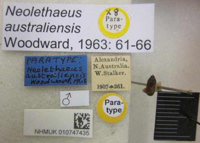 Neolethaeus australiensis. Paratype. (BMNH) - (CC BY-NC 4.0) Photo by Stuart Cole, reproduced with permission from the Natural History Museum, London, UK.