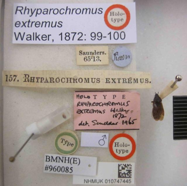 Rhyparochromus extremus. Holotype. (BMNH) - (CC BY-NC 4.0) Photo by Stuart Cole, reproduced with permission from the Natural History Museum, London, UK.