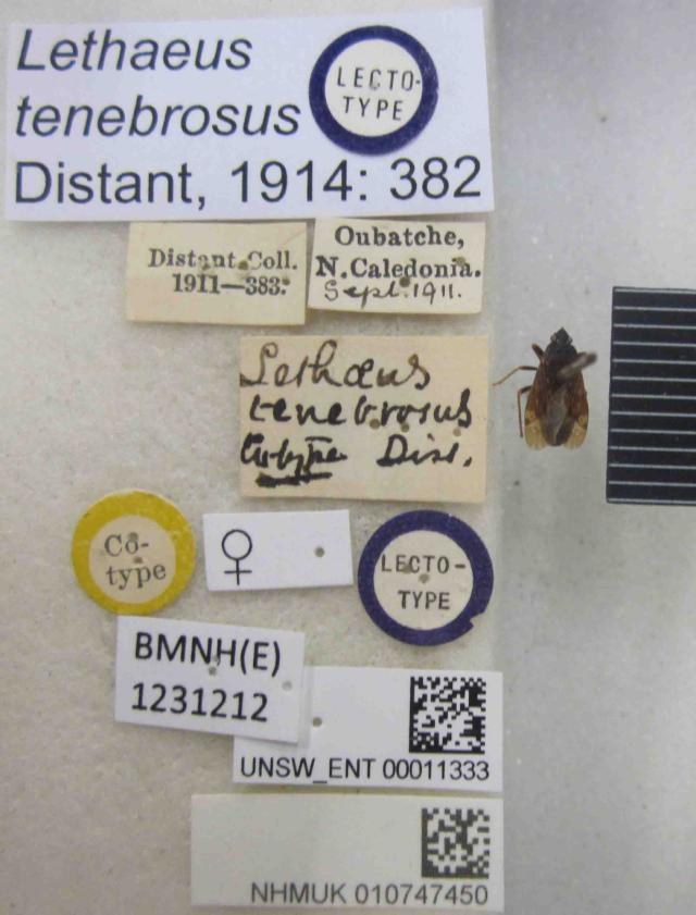 Lethaeus tenebrosus. Lectotype. (BMNH) - (CC BY-NC 4.0) Photo by Stuart Cole, reproduced with permission from the Natural History Museum, London, UK.
