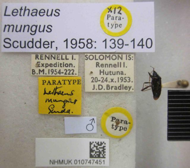 Lethaeus mungus. Paratype. (BMNH) - (CC BY-NC 4.0) Photo by Stuart Cole, reproduced with permission from the Natural History Museum, London, UK.