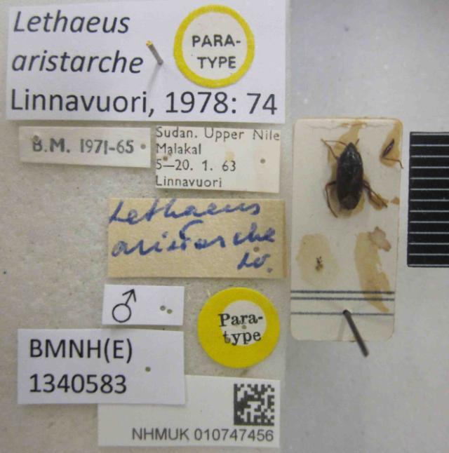 Lethaeus aristarche. Paratype. (BMNH) - (CC BY-NC 4.0) Photo by Stuart Cole, reproduced with permission from the Natural History Museum, London, UK.
