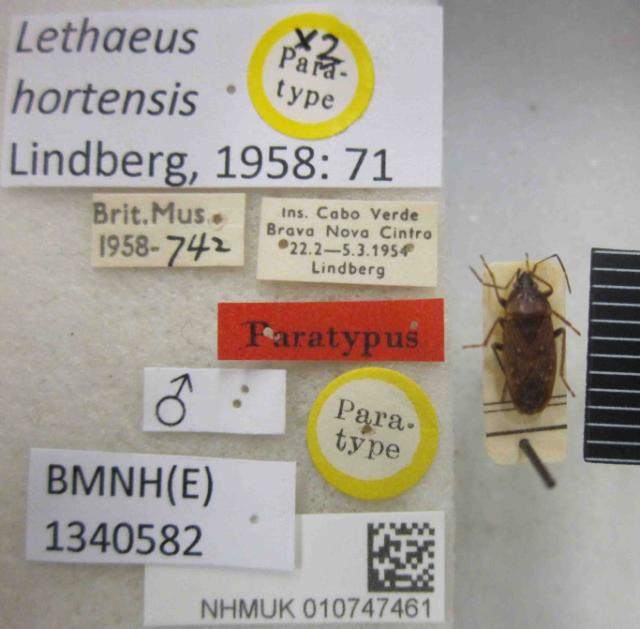Lethaeus hortensis. Paratype. (BMNH) - (CC BY-NC 4.0) Photo by Stuart Cole, reproduced with permission from the Natural History Museum, London, UK.