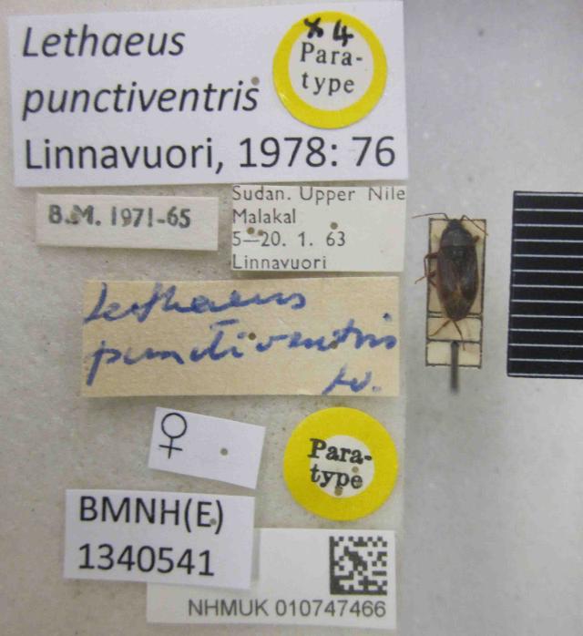 Lethaeus punctiventris. Paratype. (BMNH) - (CC BY-NC 4.0) Photo by Stuart Cole, reproduced with permission from the Natural History Museum, London, UK.