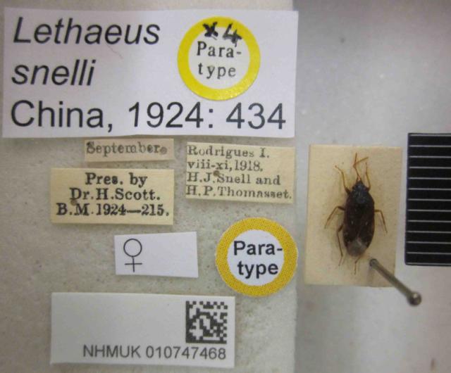 Lethaeus snelli. Paratype. (BMNH) - (CC BY-NC 4.0) Photo by Stuart Cole, reproduced with permission from the Natural History Museum, London, UK.