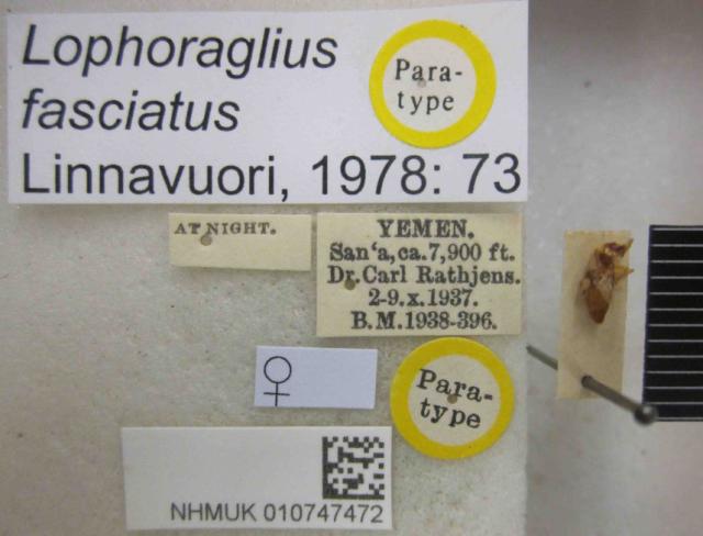 Lophoraglius fasciatus. Paratype. (BMNH) - (CC BY-NC 4.0) Photo by Stuart Cole, reproduced with permission from the Natural History Museum, London, UK.