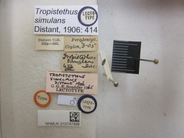 Tropistethus simulans. Lectotype. (BMNH) - (CC BY-NC 4.0) Photo by Stuart Cole, reproduced with permission from the Natural History Museum, London, UK.