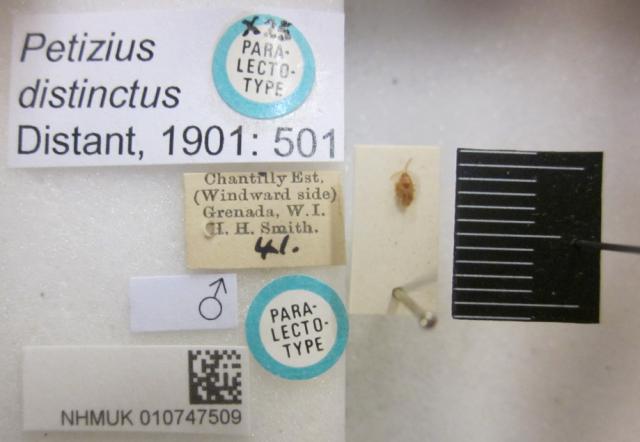Petizius distinctus. Paralectotype. (BMNH) - (CC BY-NC 4.0) Photo by Stuart Cole, reproduced with permission from the Natural History Museum, London, UK.