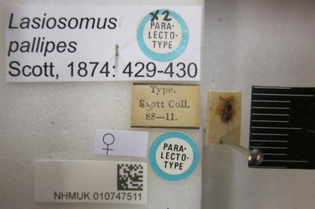 Lasiosomus pallipes. Paralectotype. (BMNH) - (CC BY-NC 4.0) Photo by Stuart Cole, reproduced with permission from the Natural History Museum, London, UK.