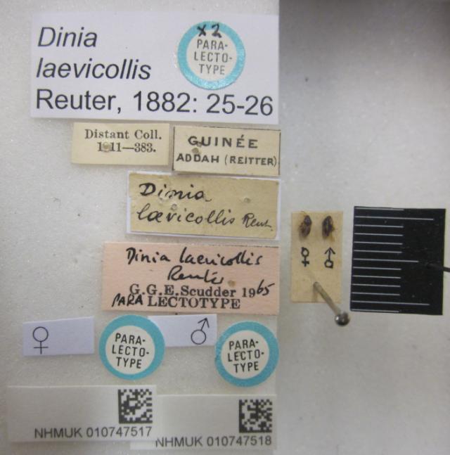 Dinia laevicollis. Palectotype. (BMNH) - (CC BY-NC 4.0) Photo by Stuart Cole, reproduced with permission from the Natural History Museum, London, UK.