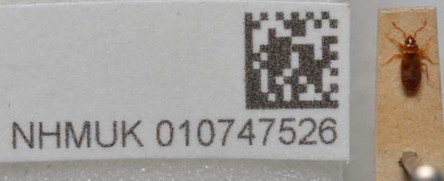 Rhyparochromus glaberrimus. Lectotype- dorsal habitus. (BMNH) - (CC BY-NC 4.0) Photo by Stuart Cole, reproduced with permission from the Natural History Museum, London, UK.