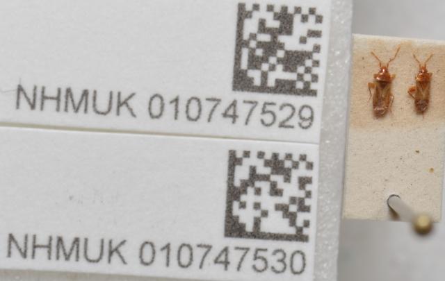 Tropistethus aurantiacus. Paralectotype- dorsal habitus. (BMNH) - (CC BY-NC 4.0) Photo by Stuart Cole, reproduced with permission from the Natural History Museum, London, UK.