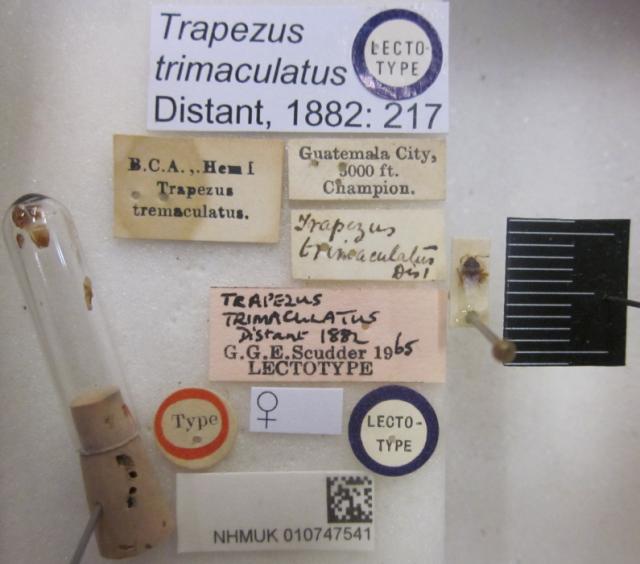 Trapezus trimaculatus. Lectotype. (BMNH) - (CC BY-NC 4.0) Photo by Stuart Cole, reproduced with permission from the Natural History Museum, London, UK.