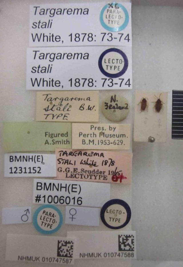 Targarema stali. Paralectotype; Lectotype. (BMNH) - (CC BY-NC 4.0) Photo by Stuart Cole, reproduced with permission from the Natural History Museum, London, UK.