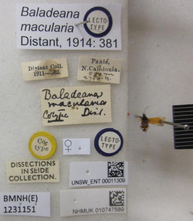 Baladeana macularia. Lectotype. (BMNH) - (CC BY-NC 4.0) Photo by Stuart Cole, reproduced with permission from the Natural History Museum, London, UK.