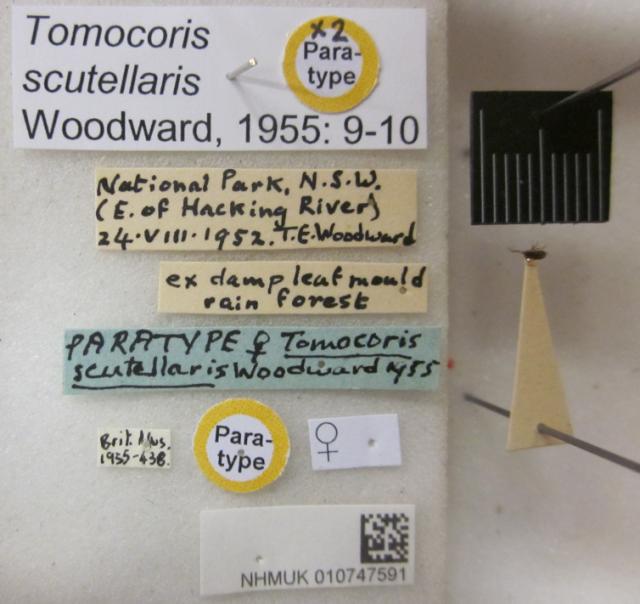 Tomocoris scutellaris. Paratype. (BMNH) - (CC BY-NC 4.0) Photo by Stuart Cole, reproduced with permission from the Natural History Museum, London, UK.