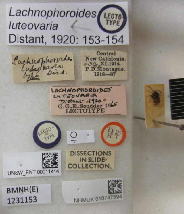 Lachnophoroides luteovaria. Lectotype. (BMNH) - (CC BY-NC 4.0) Photo by Stuart Cole, reproduced with permission from the Natural History Museum, London, UK.
