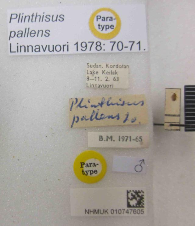 Plinthisus pallens. Paratype. (BMNH) - (CC BY-NC 4.0) Photo by Stuart Cole, reproduced with permission from the Natural History Museum, London, UK.